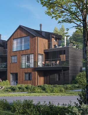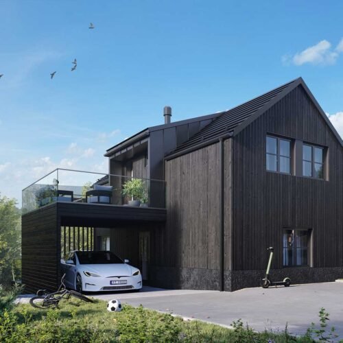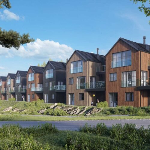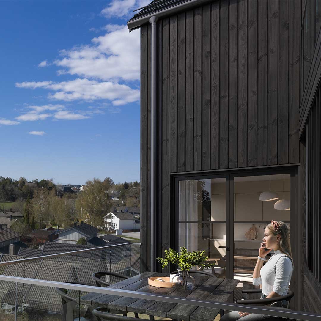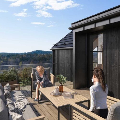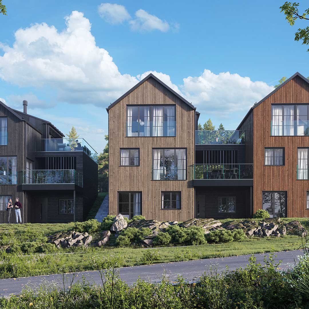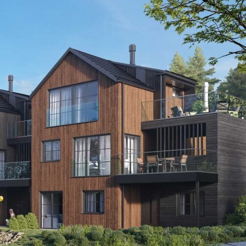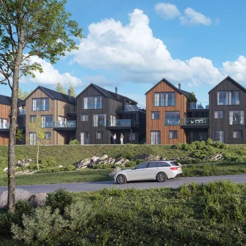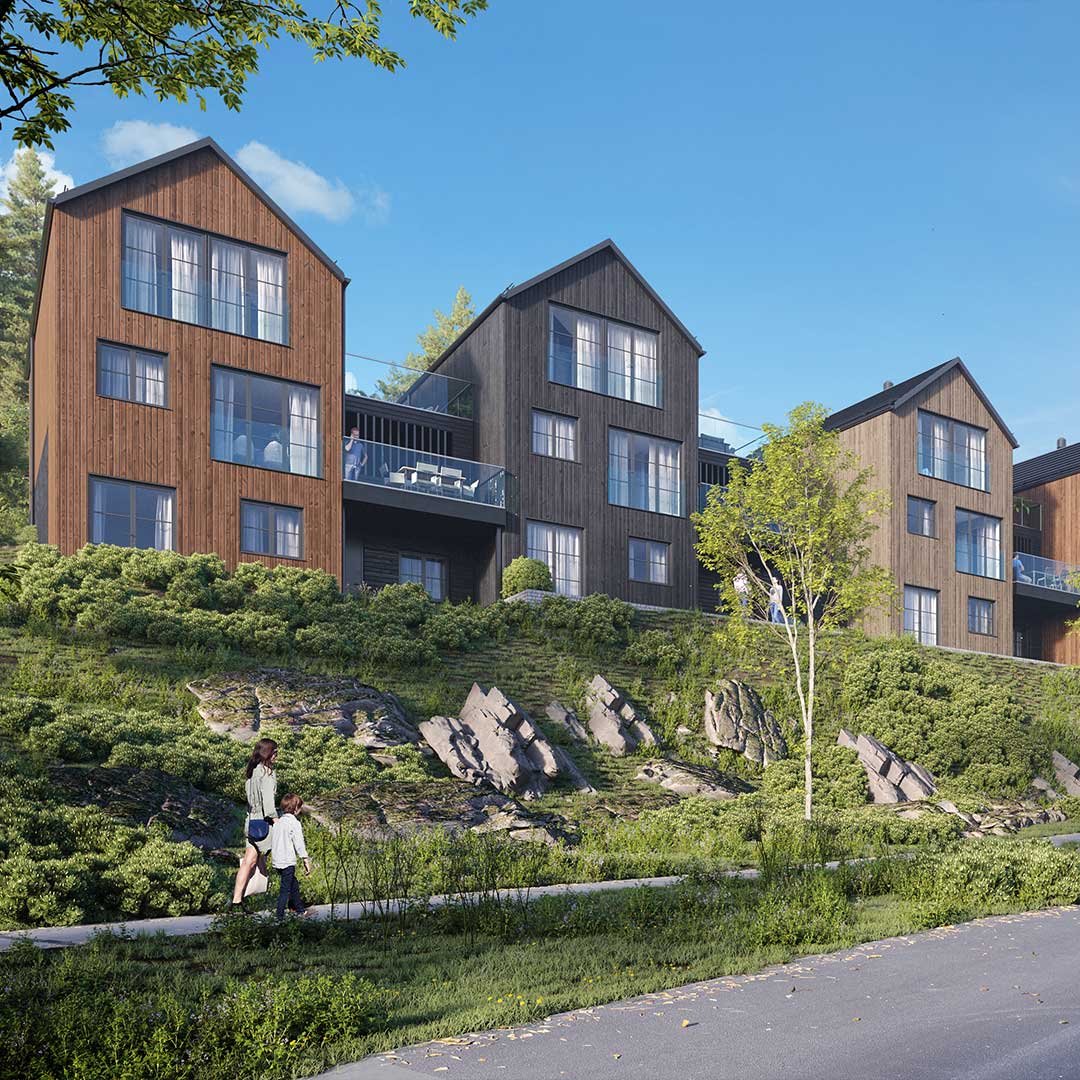 Med fokus på kvalitet og design vil disse hjemmene ha to etasjer pluss en romslig underetasje som gir mulighet for en egen hybel eller generasjonsbolig. Boligene er kledd i stående trebekledning og store vinduer som gir et stilrent og moderne uttrykk. Med carport og takterrasser mellom husene vil beboerne ha direkte atkomst til hjemmene sine og hyggelige utemuligheter med gode solforhold.